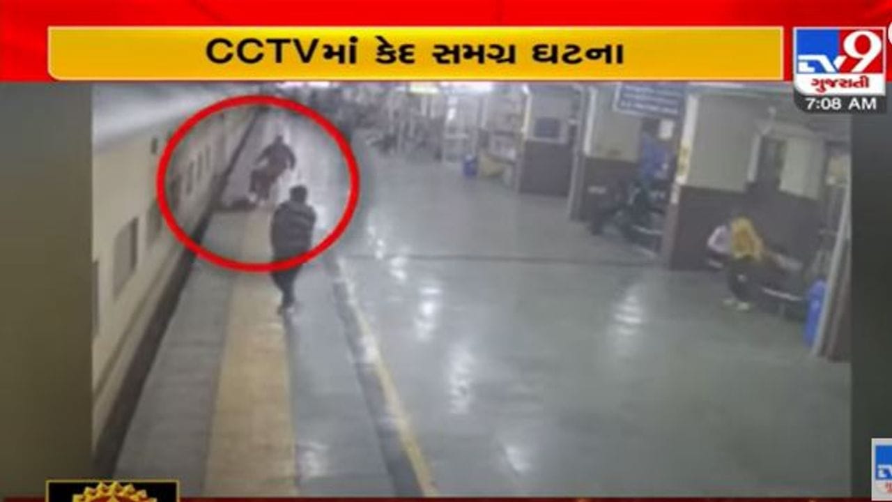 ખેડા (Kheda) જિલ્લાના નડિયાદ રેલવે પોલીસ (Nadiad Railway Police) ઉત્કૃષ્ટ કામગીરી જોવા મળી છે. નડિયાદ રેલવે પોલીસે એક દિવ્યાંગ વ્યક્તિને ટ્રેન (Train) નીચે કચળાઇ જતા બચાવી લીધો છે. જેના સીસીટીવી પણ સામે આવ્યા છે. ઘટના બાદ નડિયાદ રેલવે પોલીસની કામગીરીની પ્રશંસા થઇ રહી છે.
