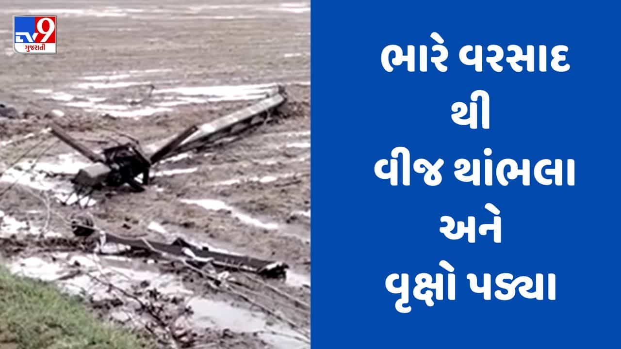 રાજકોટના જેતપુરના કેરાળી અને લુણાગરી ગામના મુખ્ય માર્ગ પર 12 વીજળીના થાંભલા અને 8 વૃક્ષ ધરાશાયી થયા છે. જેના પગલે 12 ગામમાં અંધારપટ છવાઈ ગયો છે.
