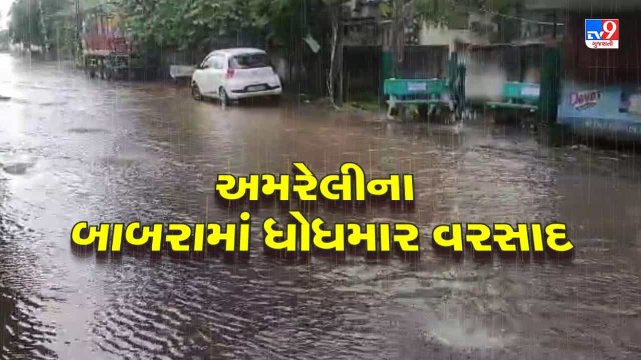 Amreli: અમરેલીના બાબરામાં ફરી વરસાદે ધમાકેદાર એન્ટ્રી મારી છે. તોફાની પવન સાથે મેઘરાજાએ તોફાની બેટિંગ શરૂ કરી અને જોતજોતામાં પાણી પાણી કરી દીધુ હતુ.