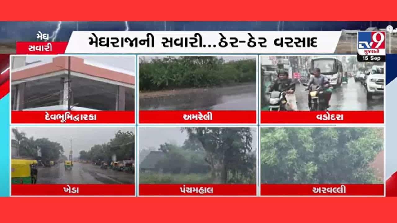 Rain Updates: રાજ્યમાં ફરી એકવાર શરૂ થયો છે વરસાદનો રાઉન્ડ. ફરી એકવાર અનેક જિલ્લામાં વરસાદી માહોલ જામ્યો છે. સૌરાષ્ટ્રના દેવભૂમિદ્વારકા, અમરેલી જિલ્લામાં ધોધમાર વરસાદ પડ્યો હતો. વડોદરા, ખેડા અને પંચમહાલમાં પણ વરસાદી માહોલ સર્જાયો હતો. તો બીજી તરફ ઉત્તર ગુજરાતના અરવલ્લી જિલ્લામાં પણ વરસાદ ખાબક્યો હતો.