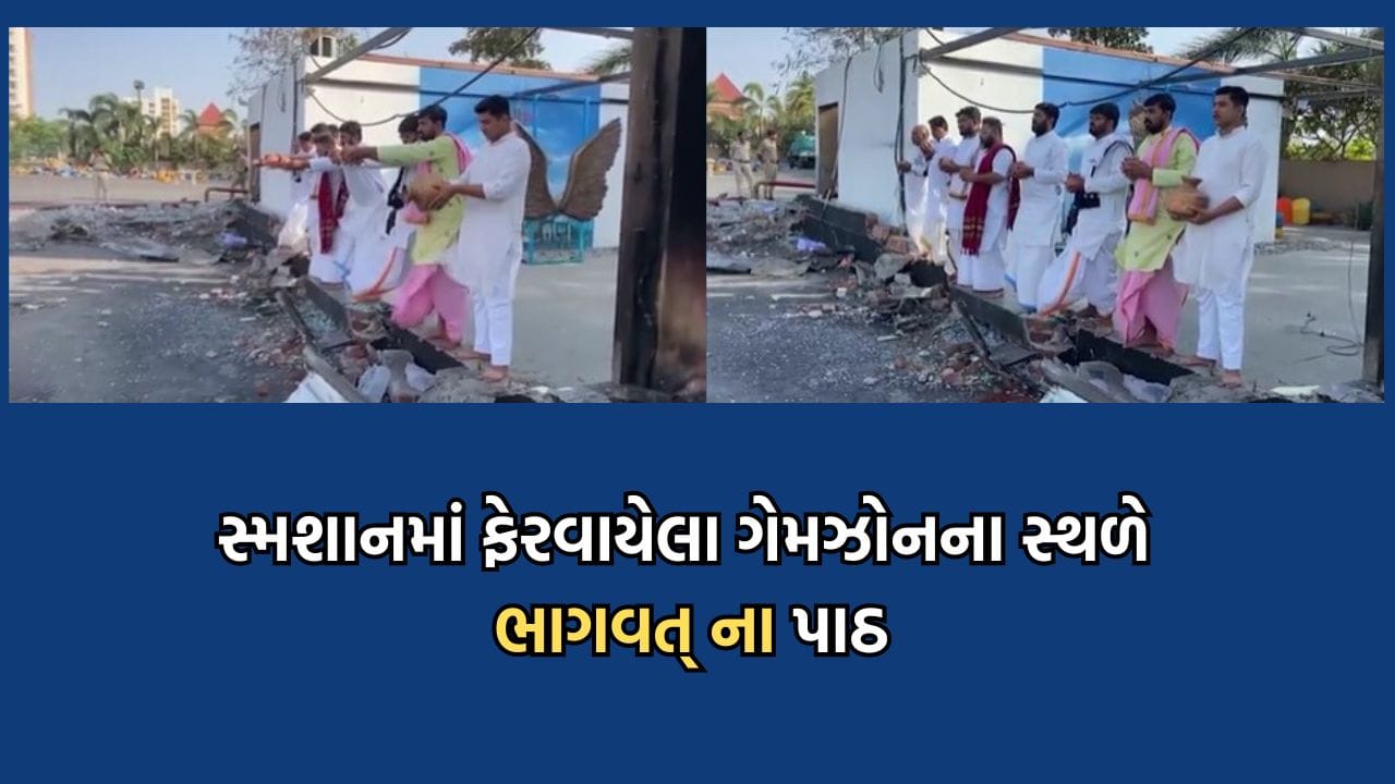 રાજકોટના નાના મવા રોડ પર આવેલો એ ગેમઝોન જે એક સમયે બાળકોના આનંદ કિલ્લોથી ગૂંજતો હતો તે આજે સ્મશાનમાં ફેરવાઈ ગયો છે, જ્યાં ગેમઝોન હતો ત્યાં આજે મેદાન થઈ ગયુ. શનિવારની સાંજે થયેલા અગ્નિકાંડમાં 32 જિંદગીઓ એ આગમાં હોમાઈ ગઈ. એ હતભાગીઓના આત્માની શાંતિ માટે આજે ત્યાં 9 બ્રાહ્મણો દ્વારા ભાગવતના પાઠ કરવામાં આવ્યા. બ્રાહ્મણોએ ઘટનાસ્થળ પર ચતુશ્લોકી ભાગવતના પાઠ કર્યા. મૃતકોના આત્માને શાંતિ અર્પણ કરવા માટે દૂધ, તલ, પાણી, તુલસી સમર્પિત કરી ભાગવતના પાઠ કરવામાં આવ્યા અને ભગવાન વિષ્ણુને તેમના આત્માની શાંતિ માટે પ્રાર્થના કરવામાં આવી.