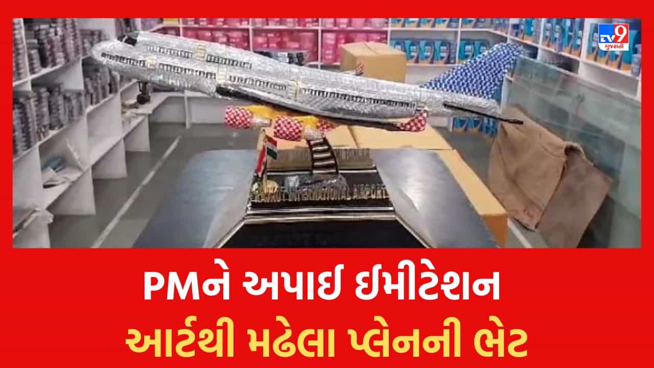 Rajkot: વડાપ્રધાન નરેન્દ્ર મોદીને વિકાસની ઉડાનના પ્રતીક સમાન ઈમીટેશન આર્ટથી મઢેલા પ્લેનની અપાઈ ભેટ- જુઓ Video