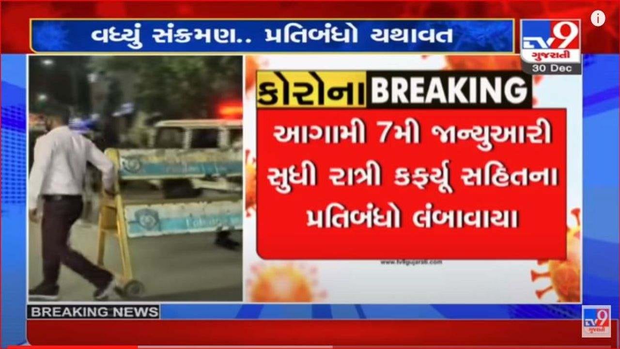 છેલ્લા થોડા દિવસથી રાજ્યમાં કોરોનાના કેસમાં સતત વધારો નોંધાઈ રહ્યો છે. જેને લઈને સરકાર દ્વારા ધીરે ધીરે નિયંત્રણ લાગુ કરવામાં આવી રહ્યા છે. સાવચેતીના ભાગરૂપે જ સરકાર દ્વારા રાજ્યના 8 મહાનગરમાં રાત્રી કર્ફ્યૂ 7 જાન્યુઆરી સુધી લંબાવવામાં આવ્યો છે.
