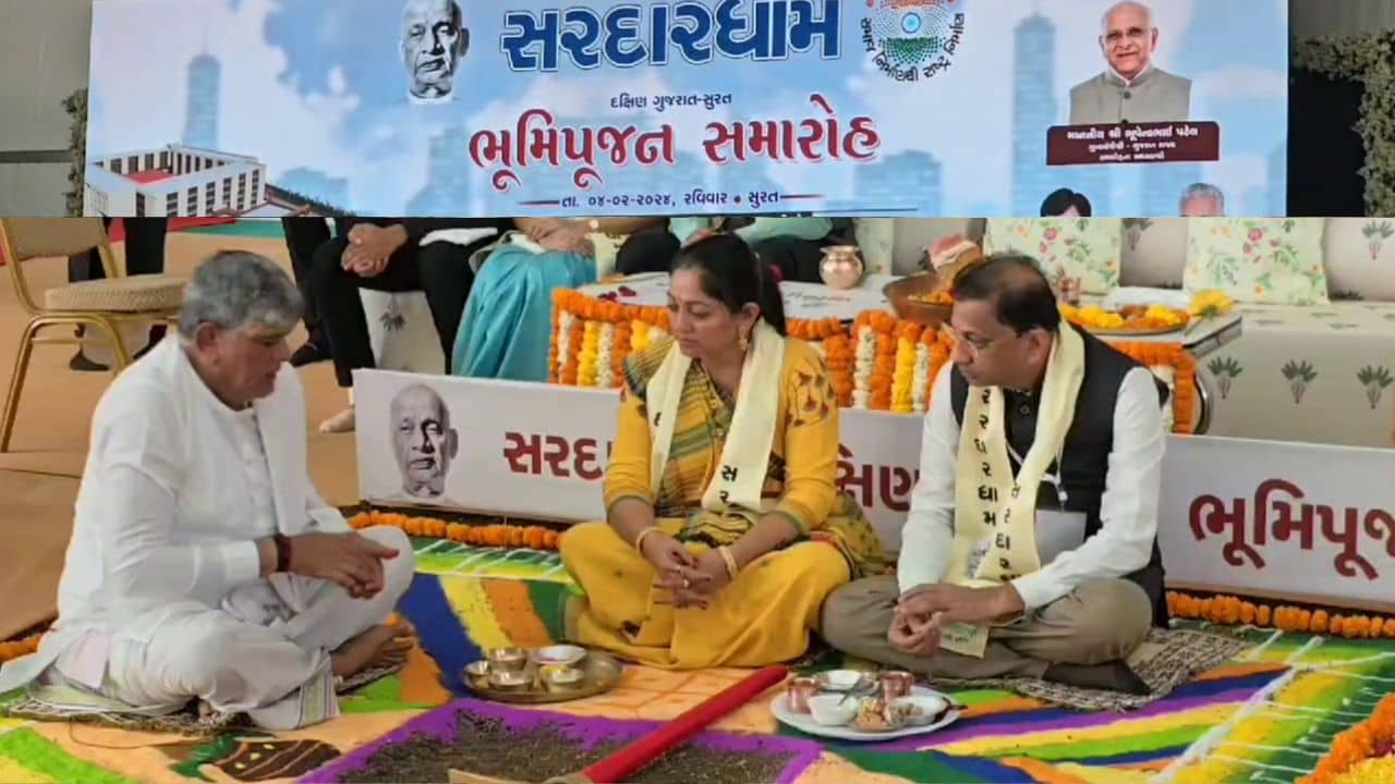 સુરતના અંત્રોલી ખાતે સરદારધામના ભૂમિ પૂજન કાર્યક્રમ યોજાયો. 500 કરોડના ખર્ચે નિર્માણ પામનાર સરદાર ધામના ભૂમિ પૂજન કાર્યક્રમમાં કેન્દ્રીય પ્રધાન મનસુખ માંડવીયા, કેન્દ્રીય પશુપાલન અને મત્સ્ય ઉદ્યોગપ્રધાન પુરૂષોત્તમ રૂપાલા, ગૃહ રાજ્યપ્રધાન હર્ષ સંઘવી, શિક્ષણ પ્રધાન પ્રફુલ પાનસેરિયા સહિત રાજકીય આગેવાનો હાજર રહ્યા હતા. તો પાટીદાર સમાજના દાતાઓ તેમજ પાટીદાર સમાજના લોકો મોટી સંખ્યામાં હાજર રહ્યા હતા.