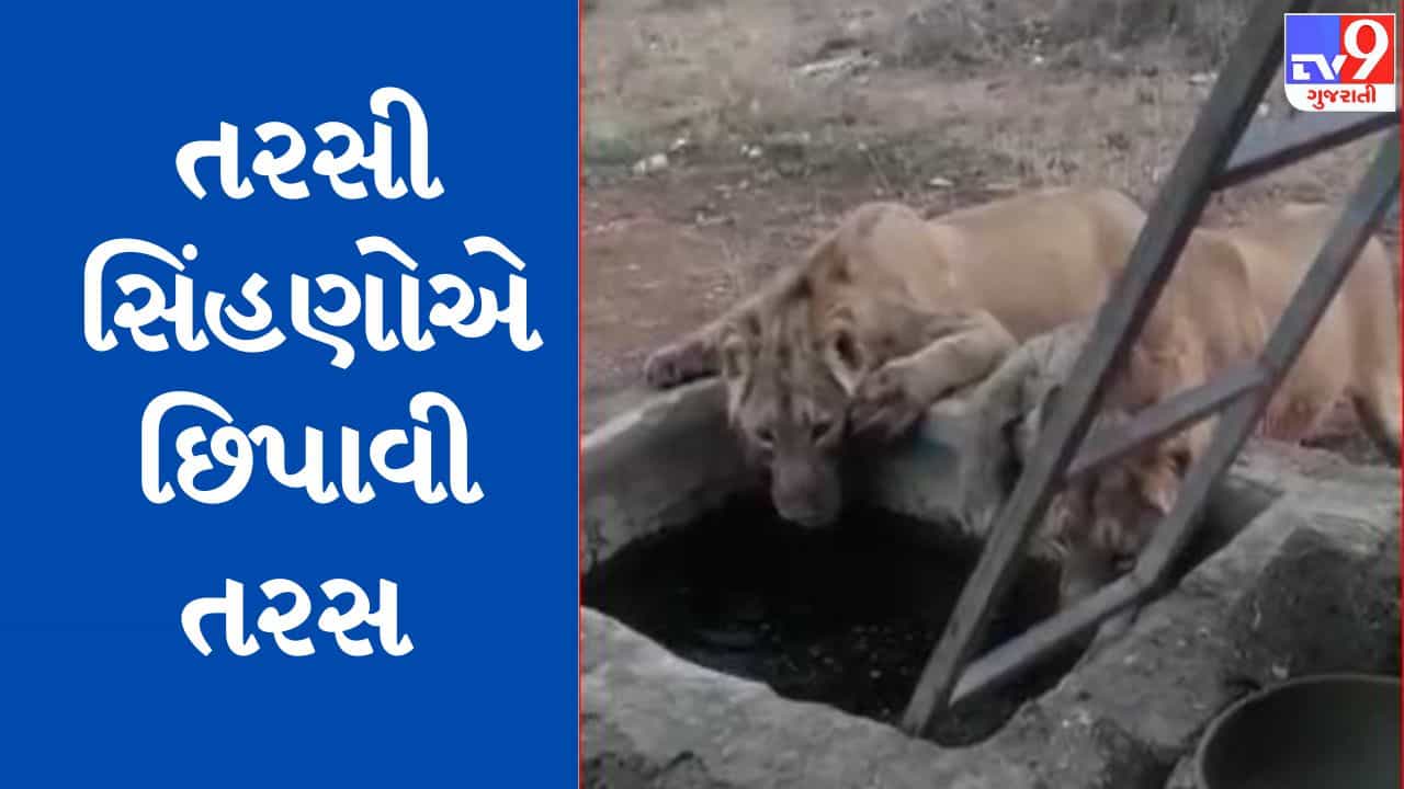 Gujarati Video: સાવજડા સેંજળ પીવે, તરસી સિંહણો ગ્રામ્ય વિસ્તારોમાં આવી કુંડીમાંથી પીવા લાગી પાણી, જુઓ Video