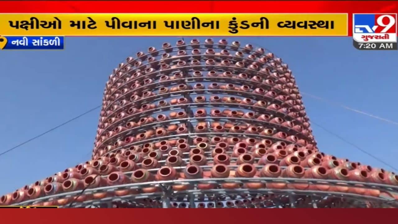 રાજકોટના ગામમાં 2500 માટલાનો ઉપયોગ કરીને 'શિવલિંગ' આકારનું પક્ષી ઘર તૈયાર કરવામાં આવ્યું છે. આ અનોખું પક્ષીઘર હજારો પક્ષીઓનું રહેઠાણ બનશે.