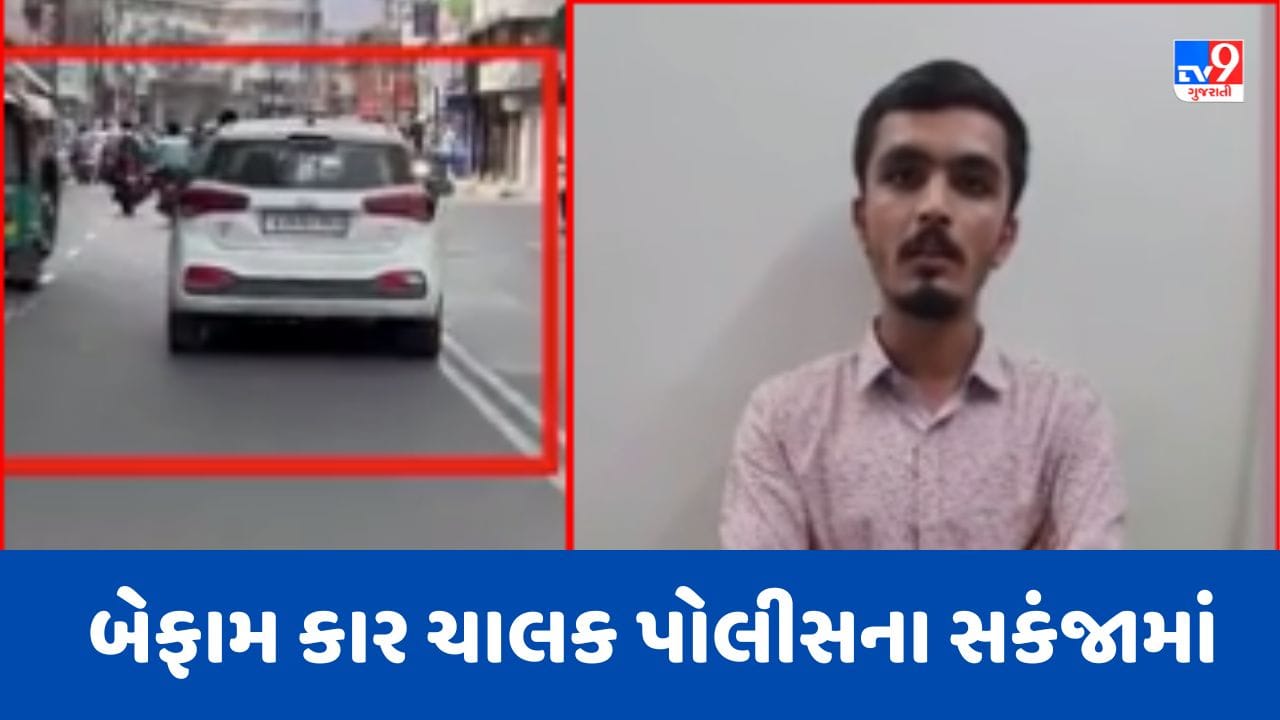 રાજકોટના યાજ્ઞિક રોડ પરનો બેફામ ડ્રાઈવિંગનો વીડિયો સોશિયલ મીડિયામાં વાયરલ થયો હતો. જેના આધારે એ ડિવીઝન પોલીસે કાર ચલાવનારા નબીરાને ઝડપી પાડ્યો હતો. પોલીસના સકંજામાં આવતા જ યુવક માફી માગવા લાગ્યો હતો. અને લોકોને ટ્રાફિકના નિયમ પાળી અને રોડ પર સ્ટંટ ન કરવા અપીલ કરી હતી.