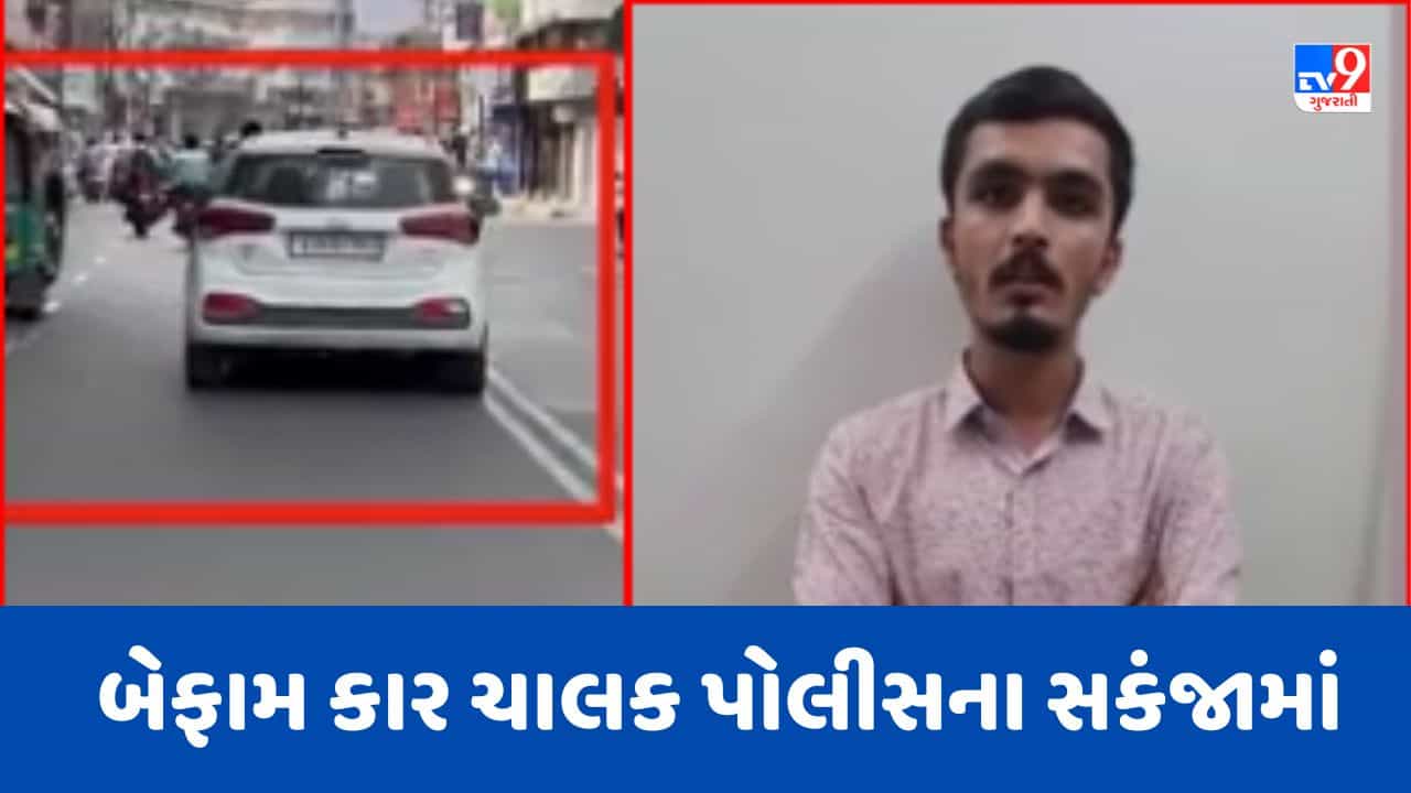 Rajkot: યાજ્ઞિક રોડ પર બેફામ કાર ચલાવતો શખ્સ ઝડપાયો, અન્ય વાહન ચાલકોનો જીવ જોખમમાં મુકનાર નબીરાનો Video થયો વાયરલ