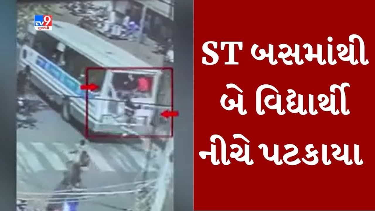 Gujarati Video : જામનગરમાં બસના ડ્રાઈવરને અચાનક બ્રેક મારતા વિચિત્ર અકસ્માત, બસની પાછળનો કાચ તૂટતા બે વિદ્યાર્થી નીચે પટકાયા