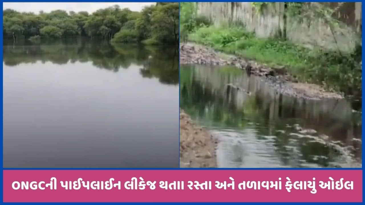 મહેસાણા જિલ્લામાં ONGCની લાઈનમાં ભંગાણ સર્જાયું છે. લાઈનમાંથી લીકેજ થતા ઓઇલ મોટા પ્રમાણમાં આસપાસના વિસ્તાર અને તળાવમાં ફેલાયું છે. જેને લઈ તળાવમાં માછલીઓ અને અન્ય જીવજંતુઓને માટે મોટો ખતરો તોળાયો છે. ઘટના જોટાણાના સુરજ ગામની છે અને જ્યાં ઓઇલ લીકેજ થવા પામ્યું છે.