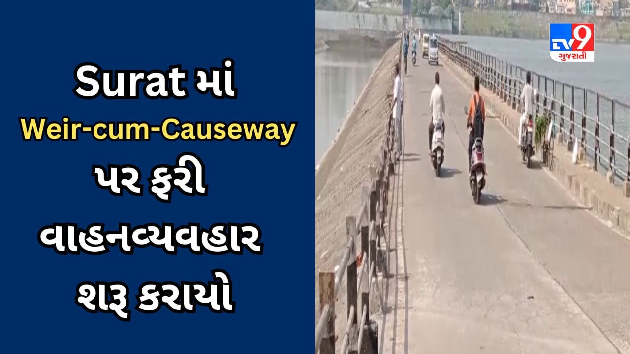 Surat : સુરતમાં વિયરકમ કોઝવે (Weir-cum-Causeway)વાહન વ્યવહાર માટે શરુ કરી દેવામાં આવ્યો છે. કોઝવેની સપાટીનોંધપાત્ર ઘટાડો થતા ઘટતા તંત્રએ સફાઈની કામગીરી હાથ ધરી હતી. હવે સ્થિતિ સામાન્ય બનતી નજરે પડતાં વિયરકમ કોઝવે પર વાહન વ્યવહાર શરુ કરી દેવામાં આવ્યો છે.