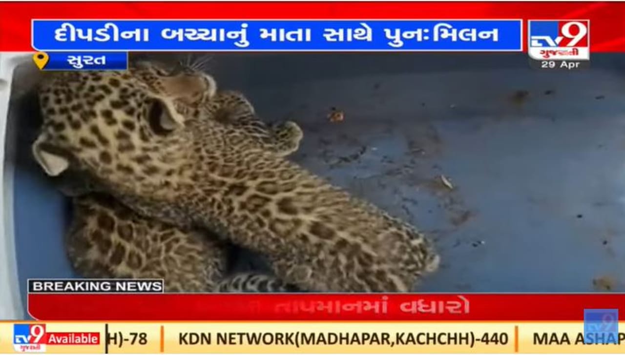 સુરતના વન વિભાગે દીપડીના બચ્ચાઓનો કબજો લીધો હતો અને દીપડીના બચ્ચાનું માતા સાથે પુનઃમિલન કરાવવા માટે વન વિભાગની ટીમે ઘટનાસ્થળે CCTV કેમેરા ગોઠવ્યા હતા.જયાં CCTVમાં દીપડી બચ્ચા સાથે જોવા મળી હતી.