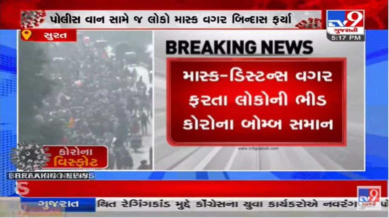 વિડીયો : સુરતમાં કોરોના સંક્રમણ વધ્યું છતાં લોકો હજુ પણ બેદરકાર, કોરોના ગાઇડ લાઇન ભુલાઈ