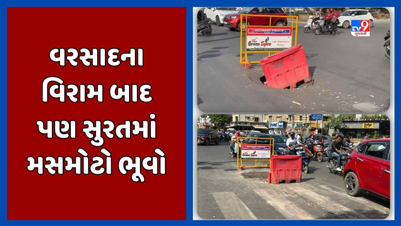 સુરત શહેરમાં રોડ પર ભૂવા (Sink Hole) પડવાની ઘટનાઓ યથાવત જોવા મળી રહી છે. સુરત શહેરમાં ભૂતકાળમાં પણ રોડમાં ભૂવા પડવાની અનેક ઘટનાઓ સામે આવી ચૂકી છે, ત્યારે અડાજણ ગુજરાત ગેસ સર્કલ પાસે વધુ એક ઘટના સામે આવી છે. જ્યાં રોડમાં મસ મોટો ભૂવો પડ્યો છે, જેના કારણે લોકોને ભારે હાલાકીનો સામનો કરવો પડી રહ્યો છે.