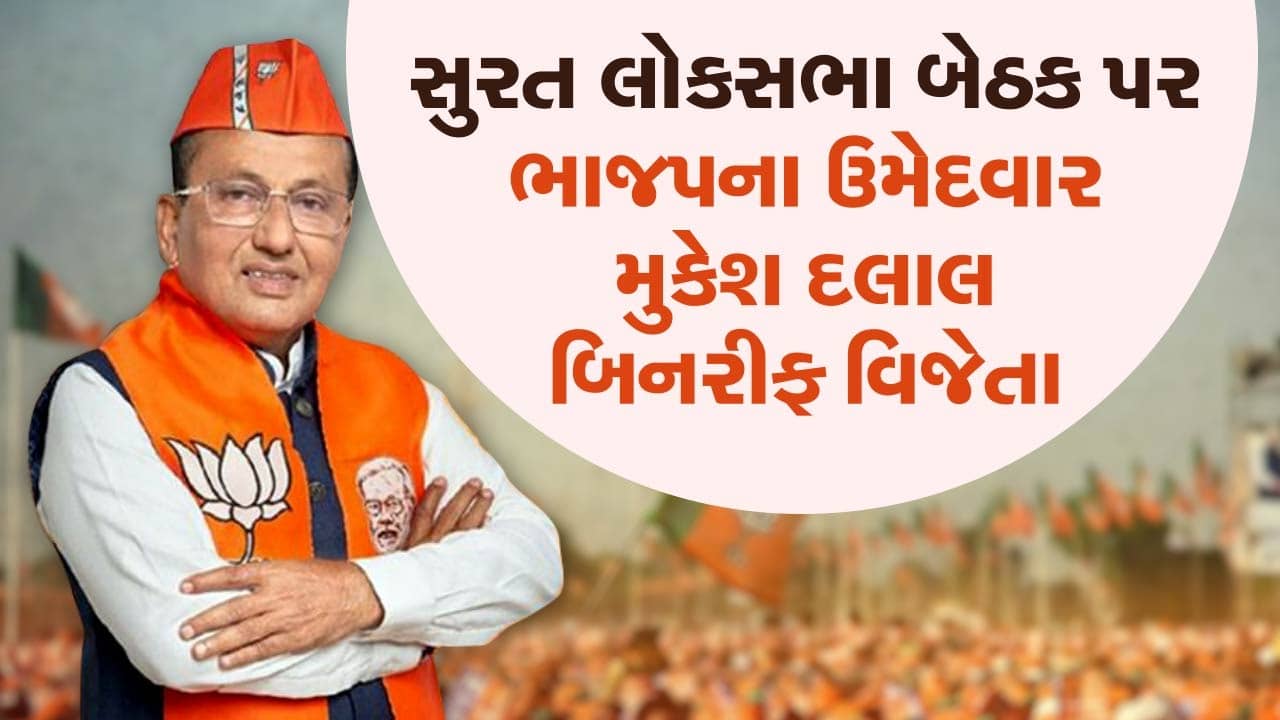 સુરત લોકસભા બેઠક પર ઇતિહાસ સર્જાયો છે. ગુજરાતની 26 બેઠક પૈકી એક બેઠક ભાજપે કબ્જે કરી લીધી છે. મતદાન પહેલા જ સુરતની બેઠક ભાજપના ખાતામાં આવી છે. ભાજપના ઉમેદવાર મુકેશ દલાલ બિનહરીફ વિજેતા બન્યા છે.