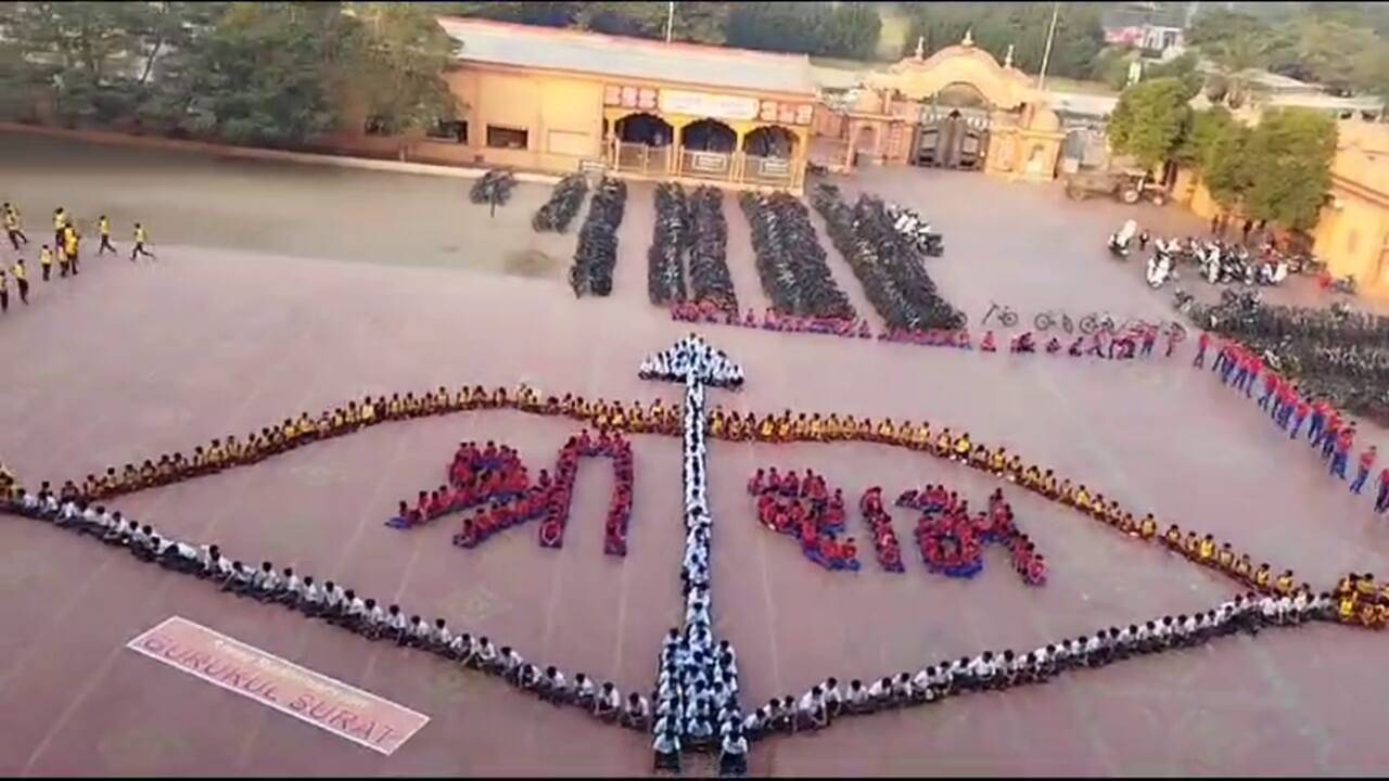 વેડ રોડ ગુરુકુળ ખાતે અયોધ્યા પ્રાણ પ્રતિષ્ઠા નિમિત્તે માનવ સાંકળથી શ્રી રામનું ધનુષ્ય રચવામાં આવ્યું હતું.ગુરુકુળના બાળકોની માનવ સાંકળ દ્વારા ધનુષ્ય બનાવામાં આવ્યું હતું.