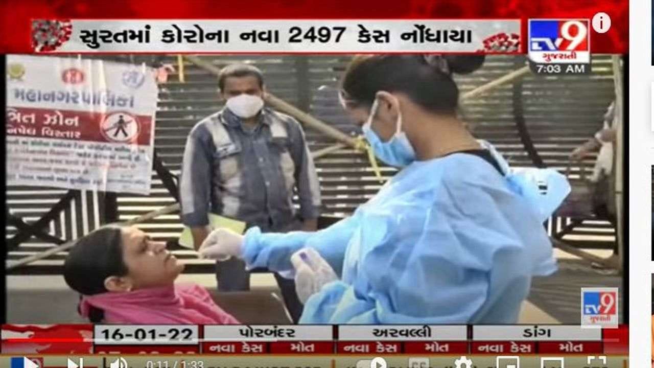 ગુજરાતમાં કોરોના (Corona)ની ત્રીજી લહેર (third wave)ની શરુઆત થઇ ગઇ છે. કોરોનાના સૌથી વધુ કેસ અમદાવાદ અને સુરત (Surat)માં નોંધાઇ રહ્યા છે. 15 જાન્યુઆરીએ સુરતમાં કોરોનાના નવા 2497 કેસ નોધાયા છે. કોરોનાના કેસમાં સતત વધારો થતા સુરતના આરોગ્ય તંત્રની ચિંતા વધી છે.