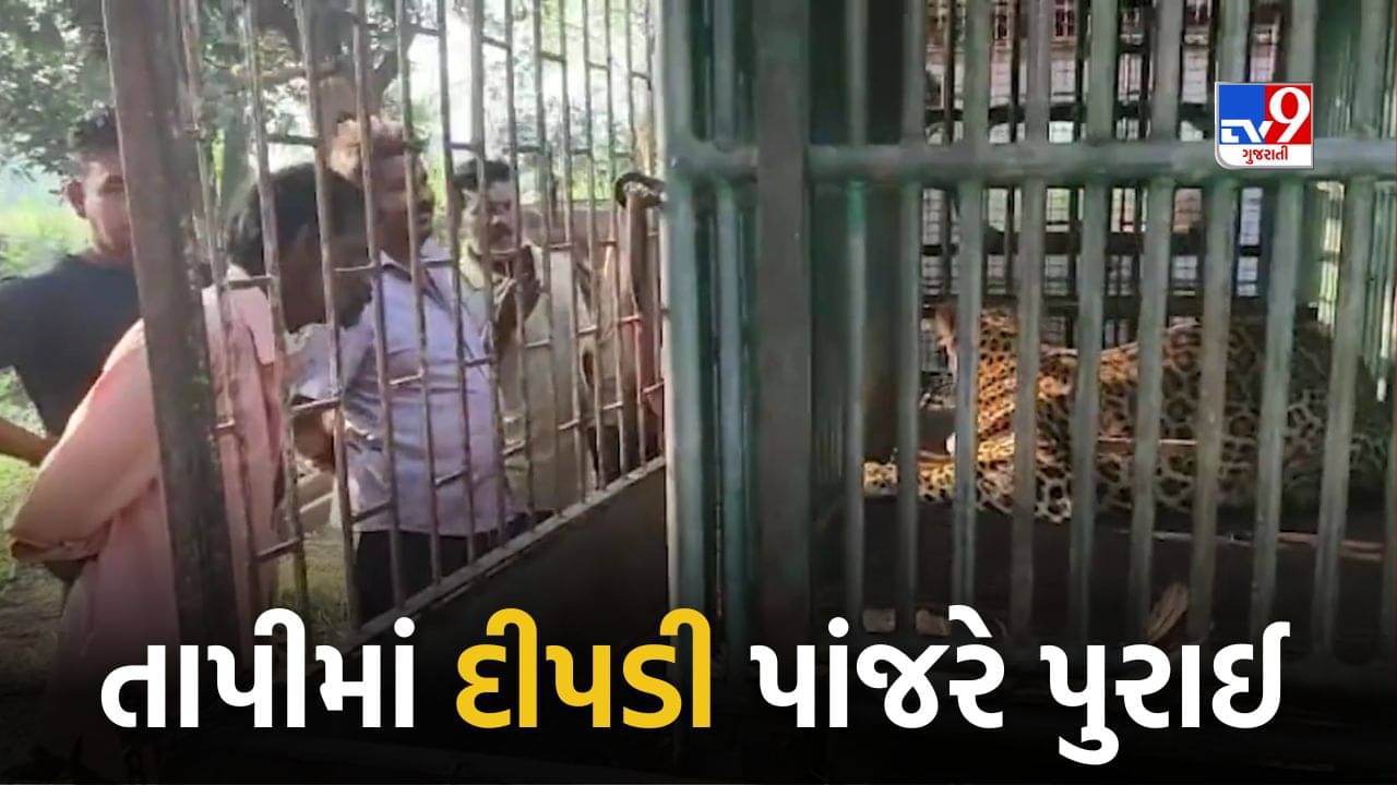 Tapi : વાલોડ તાલુકાના મોરદેવી ગામેથી દીપડી પાંજરે પુરાઈ, જુઓ Video