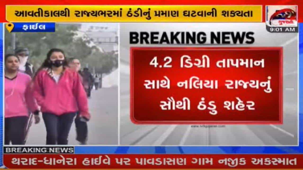 Gujarat : અમદાવાદ સહિત રાજ્યભરમાં ઠંડીનું (Cold) જોર યથાવત છે. રાજ્યના મોટાભાગના વિસ્તારોમાં ઠંડા પવનોને (Cold Wave) કારણે દિવસ દરમિયાન પણ ઠંડી અનુભવાઈ રહી છે. અમદાવાદ સહિત રાજ્યના 9 શહેરોમાં તાપમાનનો પારો 10 ડિગ્રીથી નીચે નોંધાયો હતો. સમગ્ર રાજ્યમાં 4.2 ડિગ્રી સાથે નલિયામાં સૌથી વધુ ઠંડી નોંધાઇ હતી. જો કે, આગામી 24 કલાકમાં રાજ્યમાં તાપમાનનો પારો વધતાં ઠંડીમાં ઘટાડો થવાની વકી હવામાન વિભાગે (Meteorological Department) વ્યક્ત કરી છે.