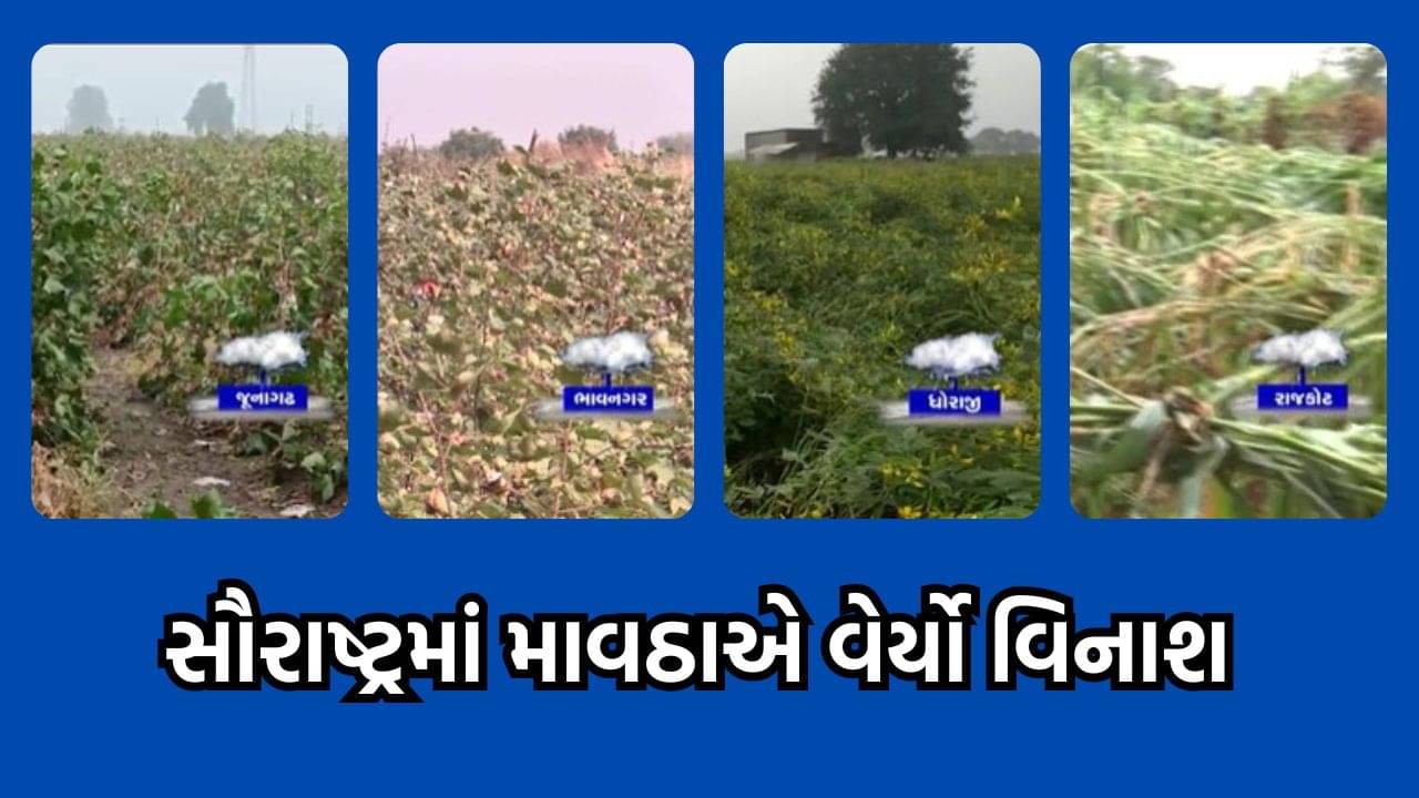 માવઠાને કારણે સૌરાષ્ટ્રમાં જીરુ, ઘઉં ઉપરાંત કપાસ જેવા પાકને નુકસાન થયુ છે. માવઠાને કારણે ખેતરમાં ઉભો પાક સાફ થઈ ગયો છે. હવે ધરતીપુત્રોની નજર સરકાર પર મંડાઈ છે. જો સરકાર સહાય કરશે તો માવઠાના મારથી ખેડૂતો બહાર આવી શકે તેમ છે.