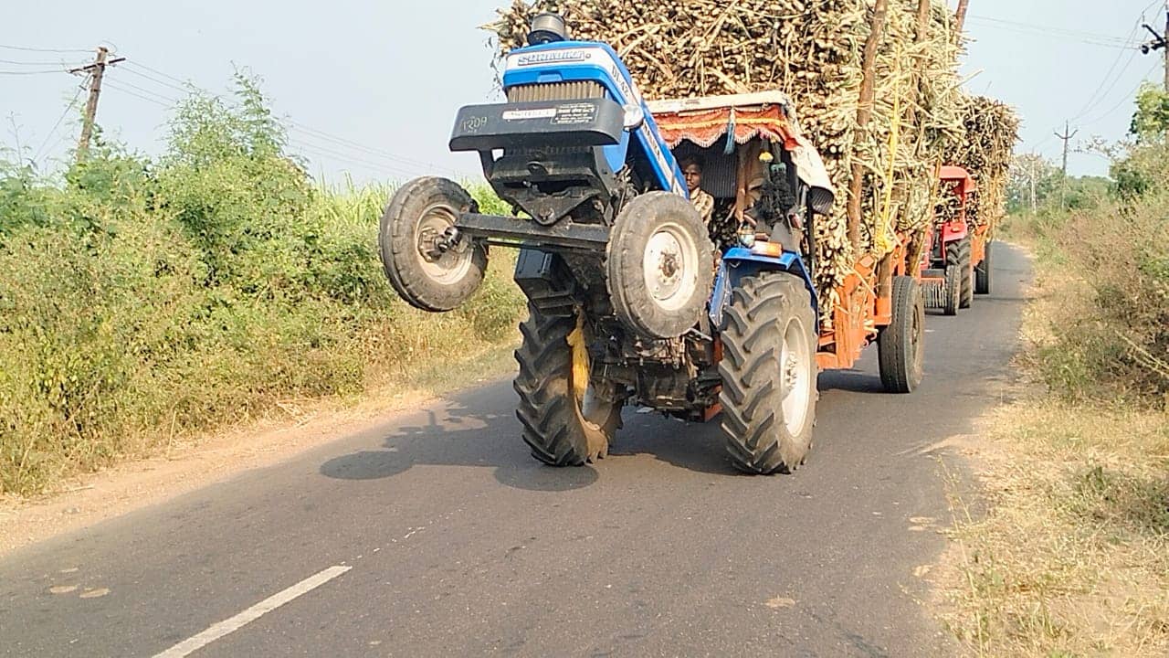 સુગર ફેકટરી માટે શેરડીનું કટીંગ હાલ ચાલી રહ્યું છે. કોન્ટ્રાકટર ઓવરલોડ શેરડી ભરીને ટ્રેકટર દ્વારા સીમમાંથી અંદાજે 25 કિલોમીટર દૂર સુગર ફેકટરી લઇ જાય છે ત્યારે આ ટ્રેકટરનાં ડ્રાઈવર ઓવરલોડ ભરેલી શેરડીનાં કારણે ટ્રેકટ નાં આગળ બંને વહીલ જમીનથી અધ્ધર રાખીને સ્ટંટ કરતાં હોય એવા દ્રશ્યો સર્જાય છે. આ સ્થિતિ રસ્તે ચાલતા રાહદારીઓનો પણ જીવને જોખમમાં મૂકે છે. આ અંગે વિડિયો વાયરલ થયો છે.