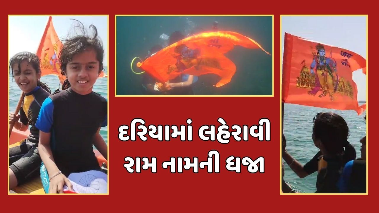 દ્વારકામાં જુડવા બહેનોએ દરિયાની અંદર ધજા લહેરાવી છે. રામ મંદિર નિર્માણની ખુશી અને પ્રાણ પ્રતિષ્ઠા મહોત્સવને આવકારવા ટ્વિન્સ બહેનોએ શિવરાજપુર દરિયામાં સ્કૂબા ડાઈવિંગ કર્યું છે.