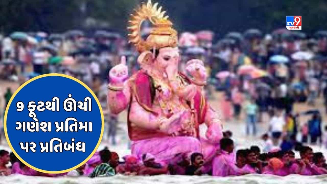 ગણેશ ઉત્સવમાં 9 ફૂટથી ઊંચી પ્રતિમા (Statue) પર પ્રતિબંધ લગાવવામાં આવ્યો છે. 9 ફૂટથી ઊંચી ગણેશ પ્રતિમા બનાવવા, વેચવા કે સ્થાપન પર પ્રતિબંધ લગાવવામાં આવ્યો છે.