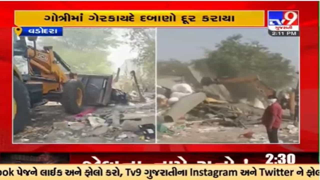 વડોદરાના ગોત્રી વિસ્તારમાં ગેરકાયદે દબાણો દૂર કરવામાં આવ્યા છે. જેમાં કોર્પોરેશનના દબાણ ખાતાએ પોલીસ કાફલાને સાથે રાખીને દબાણ દૂર કરાયું છે છે. મેયર કેયુર રોકડિયા અને સ્થાનિક કોર્પોરેટરને સાથે રાખીને આ કાર્યવાહી કરવામાં આવી છે. મહત્વનું છે કે વોર્ડ નંબર.9 સયાજીગંજ વિધાનસભા મતવિસ્તારમાં આવે છે. જ્યાંના ધારાસભ્ય કેયુર રોકડિયા છે.