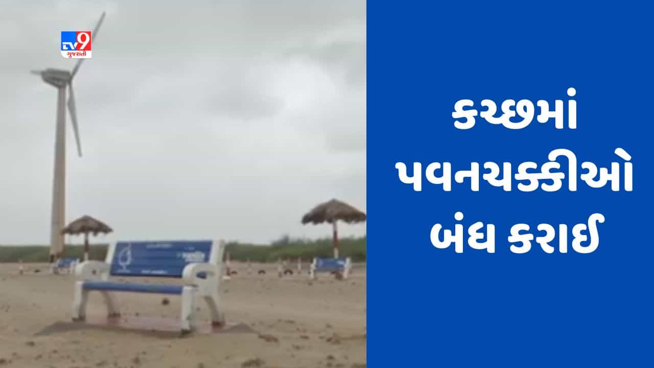 Cyclone Biporjoy : બિપરજોય વાવાઝોડાને પગલે કચ્છમાં પવનચક્કીઓ બંધ કરાઈ, જુઓ Video