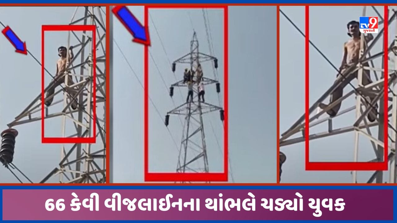 Gandhinagar: હાઈટેન્શન વીજલાઈનના થાંભલે ચડ્યો યુવક, 10 કલાક બાદ સમજાવટથી માંડ ઉતર્યો, જુઓ Video