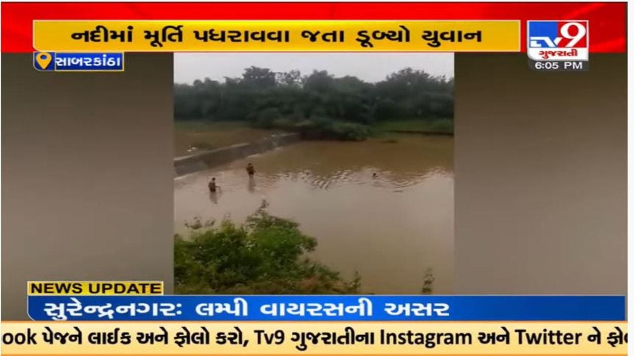 સાબરકાંઠાના ઇડરમાં મૂર્તિ વિસર્જન વખતે નદીમાં ડૂબવાતી એક યુવકનું મોત