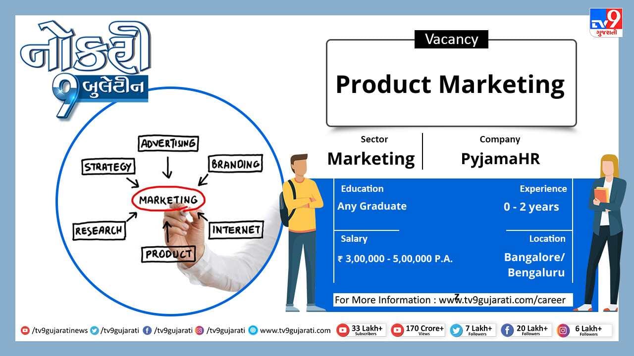 સ્નાતક થયેલા લોકો માટે નોકરીની ઉતમ તકો સર્જાઈ છે, માર્કેટીંગ ક્ષેત્રે નોકરી શોધી રહેલા ઉમેદવારો આ લીંક પર ક્લિક કરો. સ્નાતકોને મહિને 40,000થી વધુ પગાર મળશે.