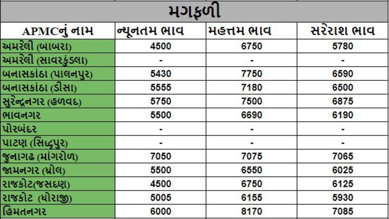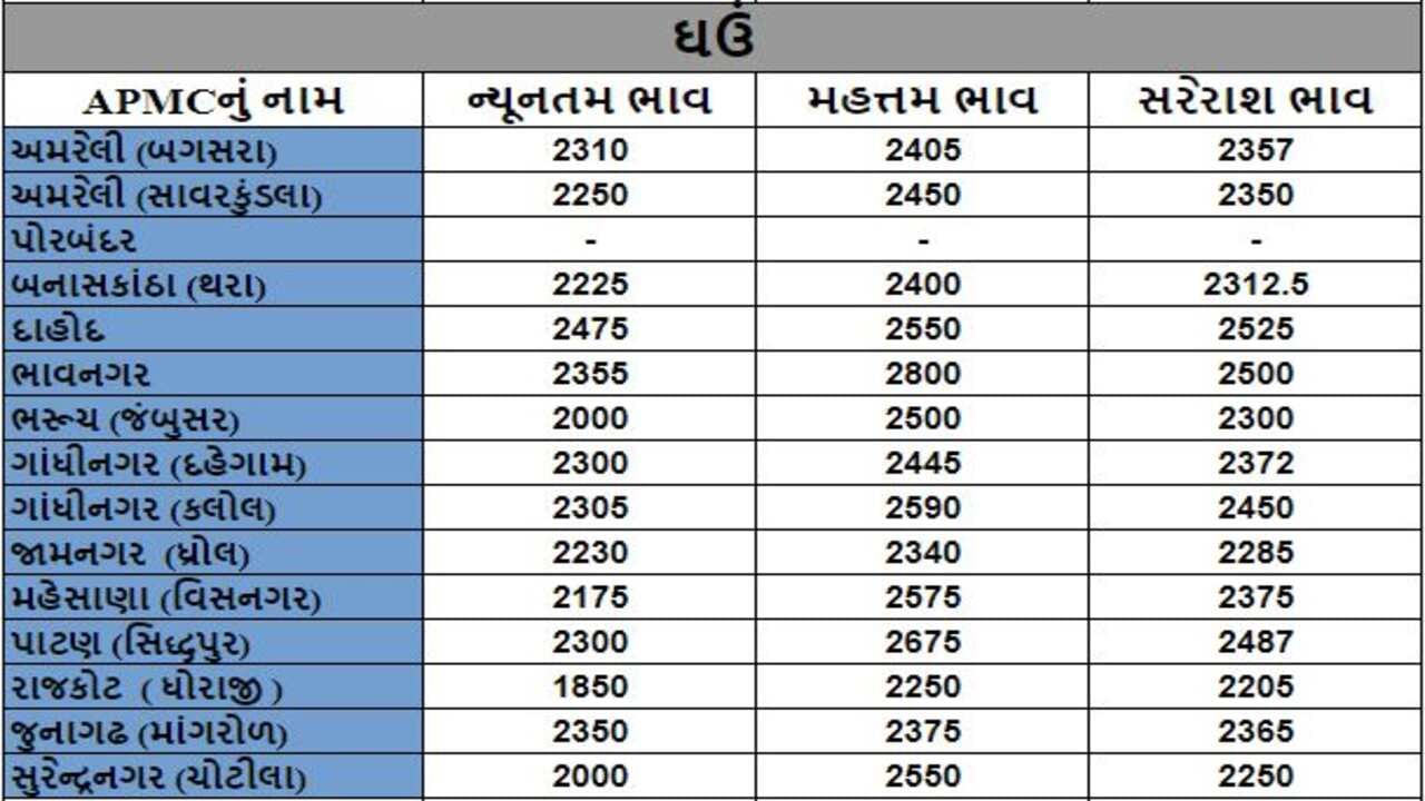Mandi : જુદા જુદા પાકના ભાવ ( Prices ) ગુજરાતના વિવિધ APMCમાં અનાજના શુ રહ્યા ભાવ ( Prices ) તે અંગે, ખેડૂત મિત્રો માટે ગુજરાતના પાકોના APMCના ભાવ ( Prices ) વિશેની માહિતી દરરોજ અમે તમને આપીશું.