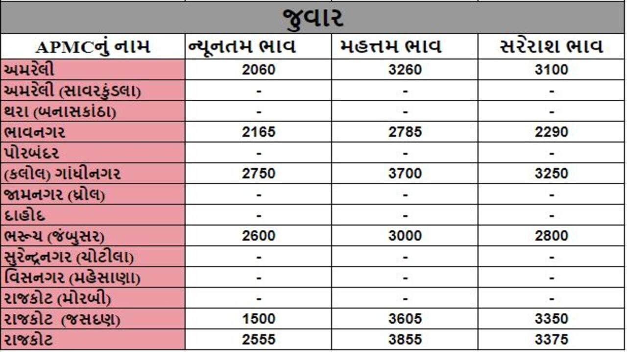 જુવારના તા.12-10-2022ના રોજ APMCના ભાવ રૂ.1500 થી 3855 રહ્યા.