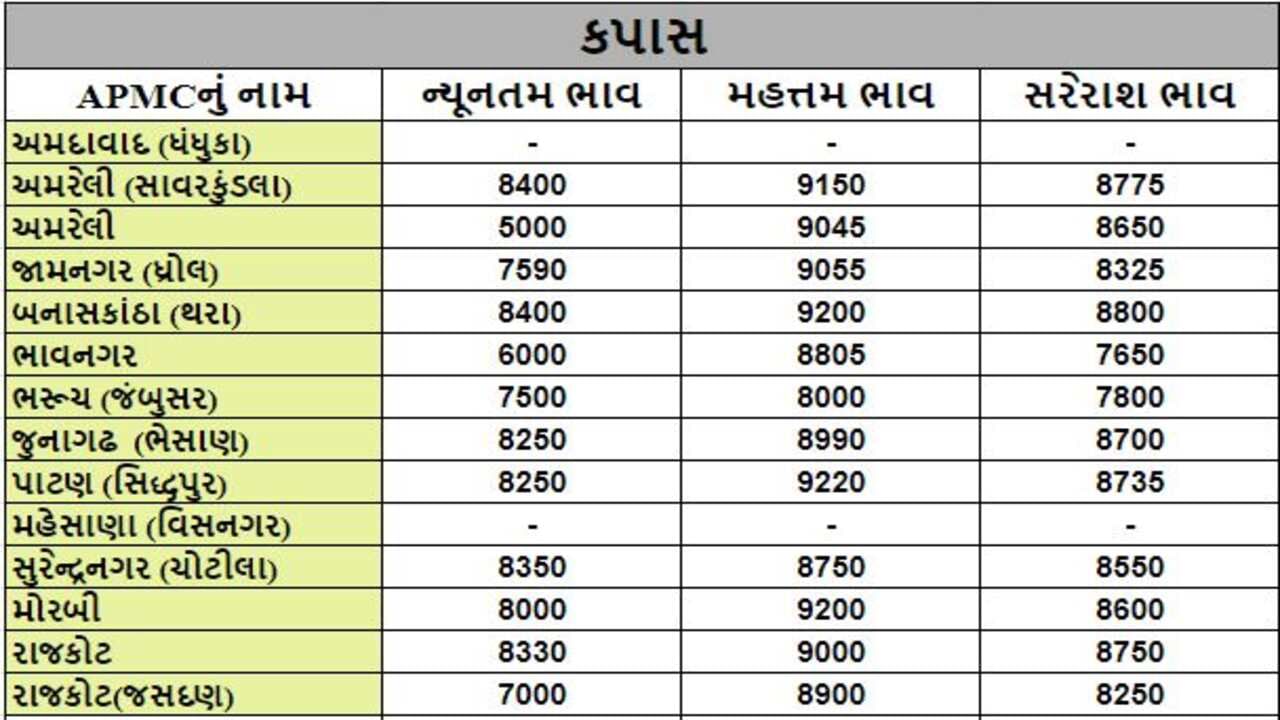 કપાસના તા.12-10-2022ના રોજ APMCના ભાવ રૂ.5000 થી 9220 રહ્યા.