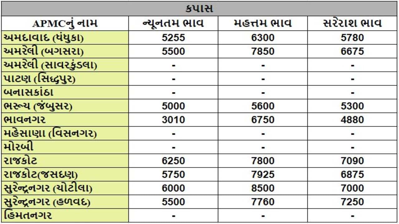 કપાસના તા.29-09-2023ના રોજ APMCના ભાવ રૂ.3010 થી 8500 રહ્યા.