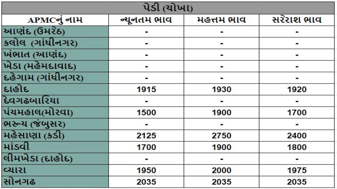 પેડી (ચોખા)ના તા.29-09-2023ના રોજ APMCના ભાવ રૂ.1500 થી 2750 રહ્યા.