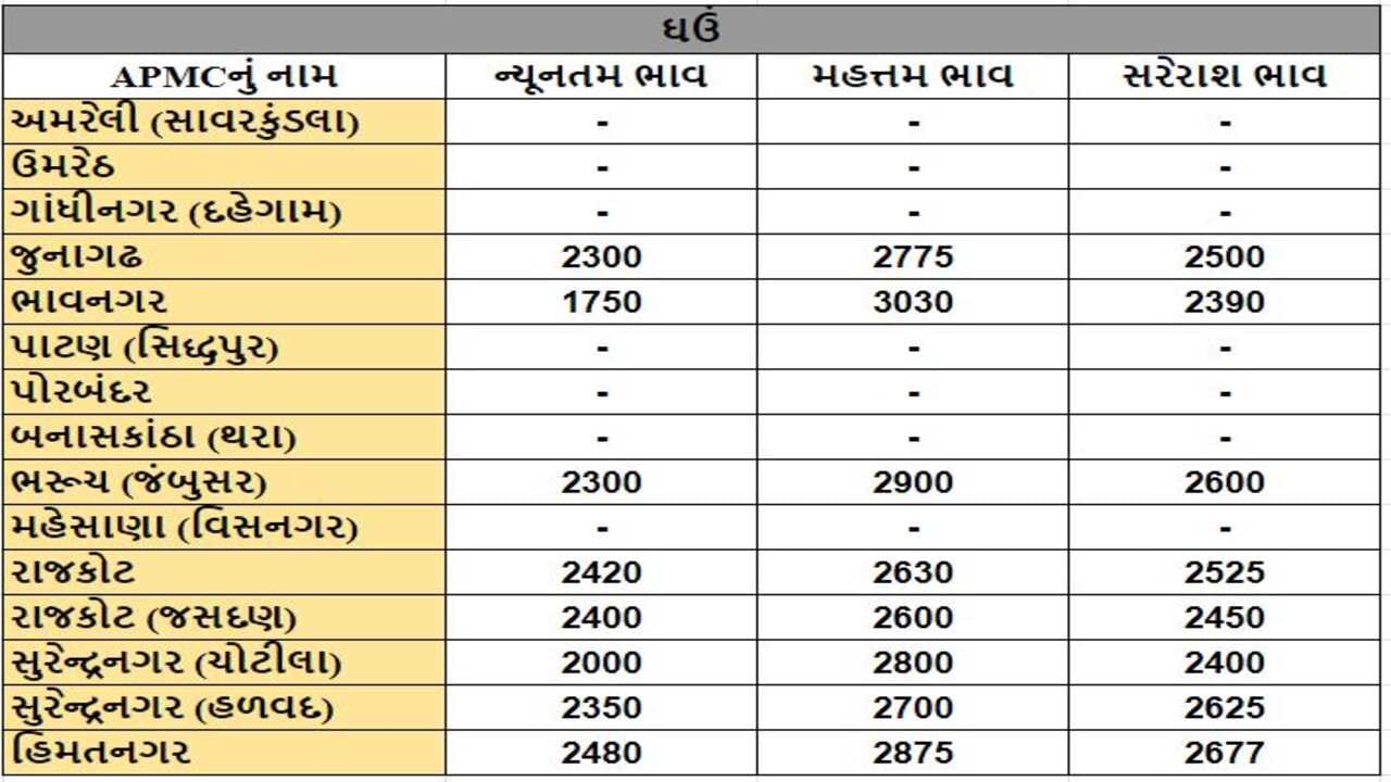 ઘઉંના તા.29-09-2023ના રોજ APMCના ભાવ રૂ.1750 થી 3030 રહ્યા.