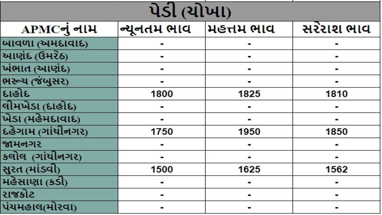 પેડી (ચોખા)ના તા.04-04-2023ના રોજ APMCના ભાવ રૂ.1500 થી 1950 રહ્યા.
