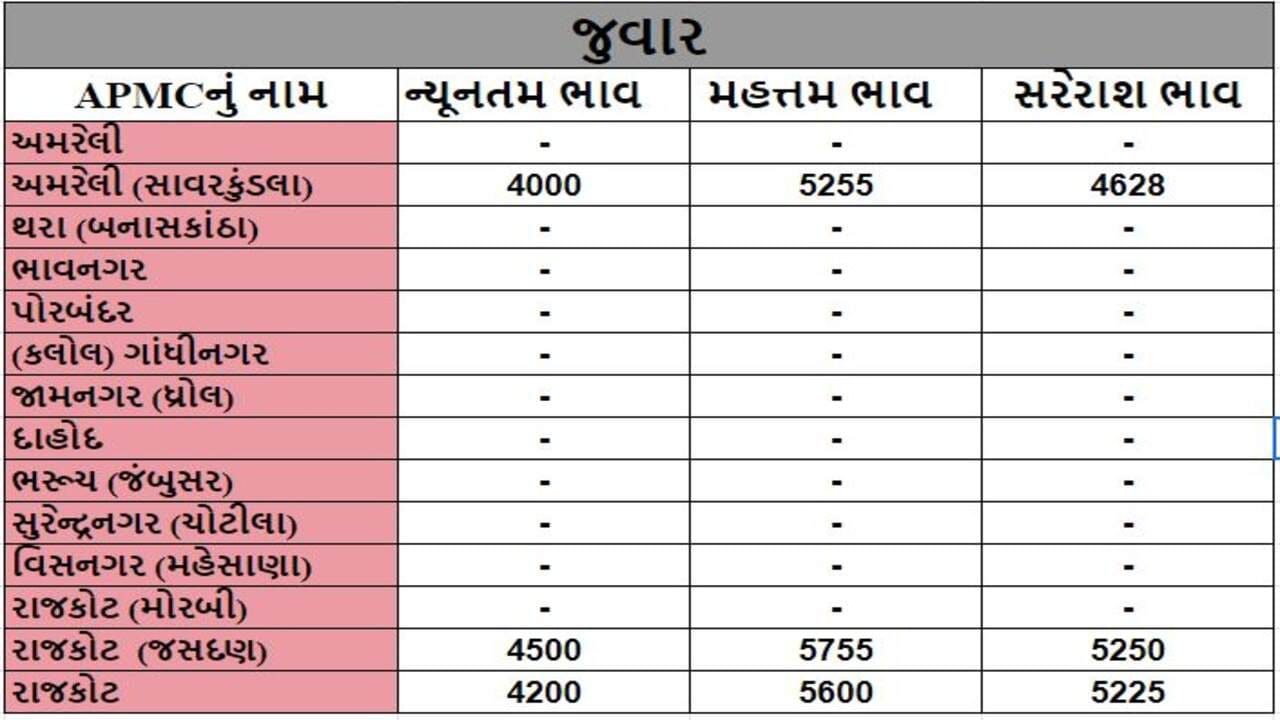 જુવારના તા.04-04-2023ના રોજ APMCના ભાવ રૂ.4000 થી 5755 રહ્યા.