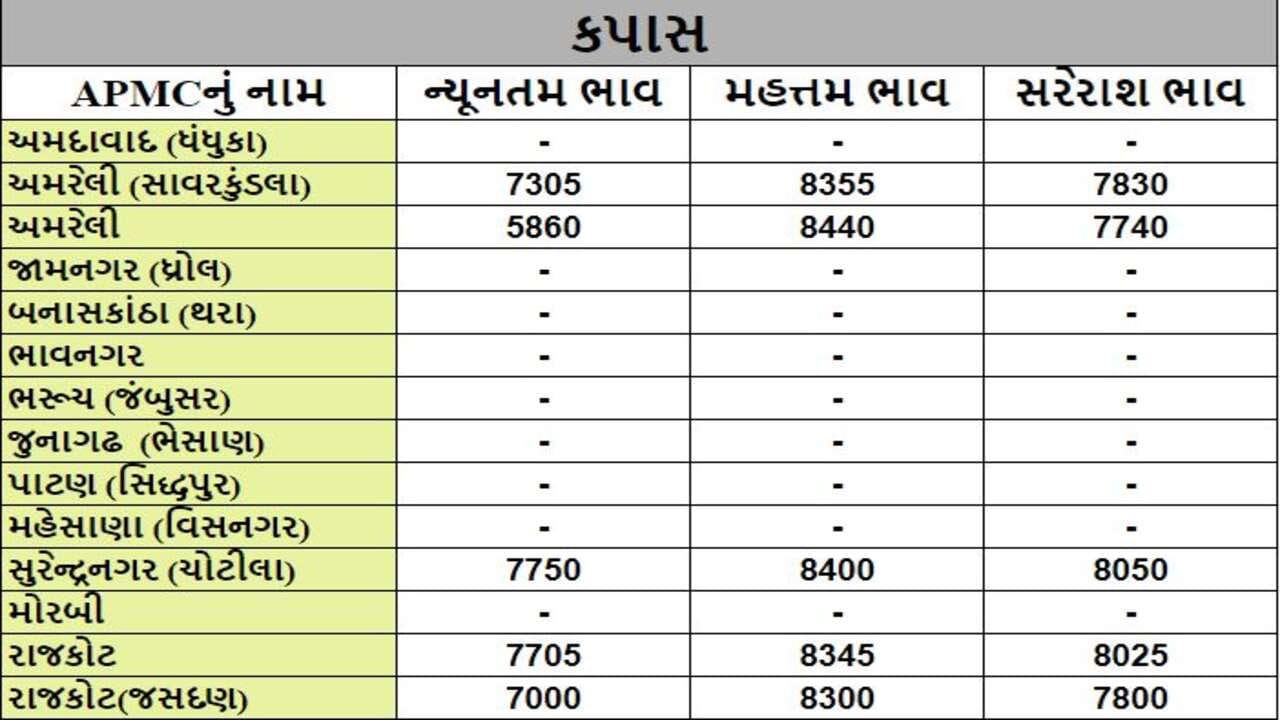 કપાસના તા.04-04-2023ના રોજ APMCના ભાવ રૂ.5860 થી 8440 રહ્યા.