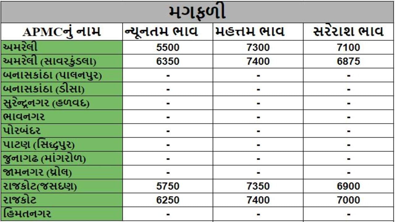 મગફળીના તા.04-04-2023ના રોજ APMCના ભાવ રૂ.5500 થી 7400 રહ્યા.
