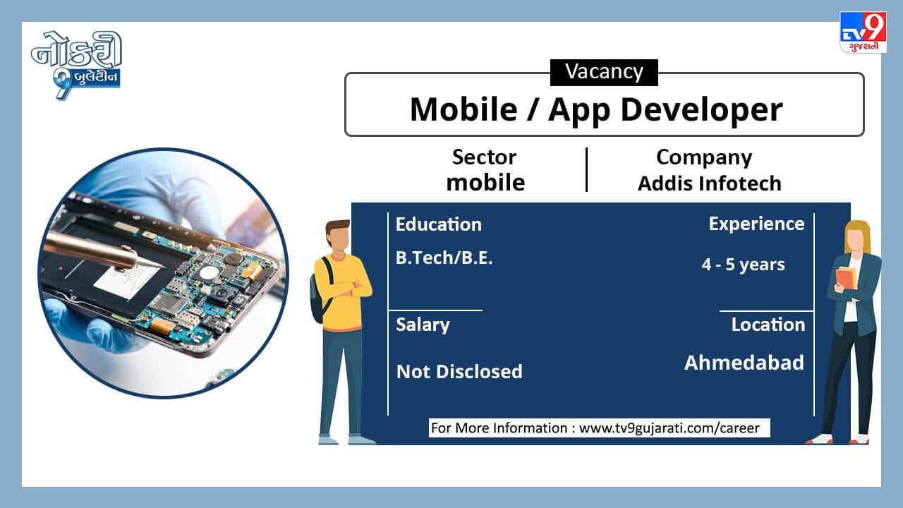 ધોરણ 10 કે 12 પાસ કે સ્નાતક થયેલા લોકો માટે નોકરીની ઉતમ તકો (Job Vacancy) સર્જાઈ છે, મોબાઈલ ક્ષેત્રે નોકરી શોધી રહેલા ઉમેદવારો આ લીંક પર ક્લિક કરો. સ્નાતકોને મહિને 180,000થી વધુ પગાર મળશે.