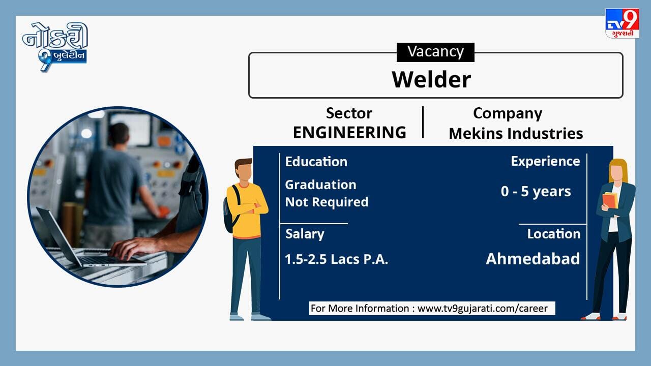 ધોરણ 10 કે 12 પાસ કે સ્નાતક થયેલા લોકો માટે નોકરીની ઉતમ તકો સર્જાઈ છે, એન્જિનિયરિંગ ક્ષેત્રે નોકરી શોધી રહેલા ઉમેદવારો આ લીંક પર ક્લિક કરો. સ્નાતકોને મહિને 75,000થી વધુ પગાર મળશે.