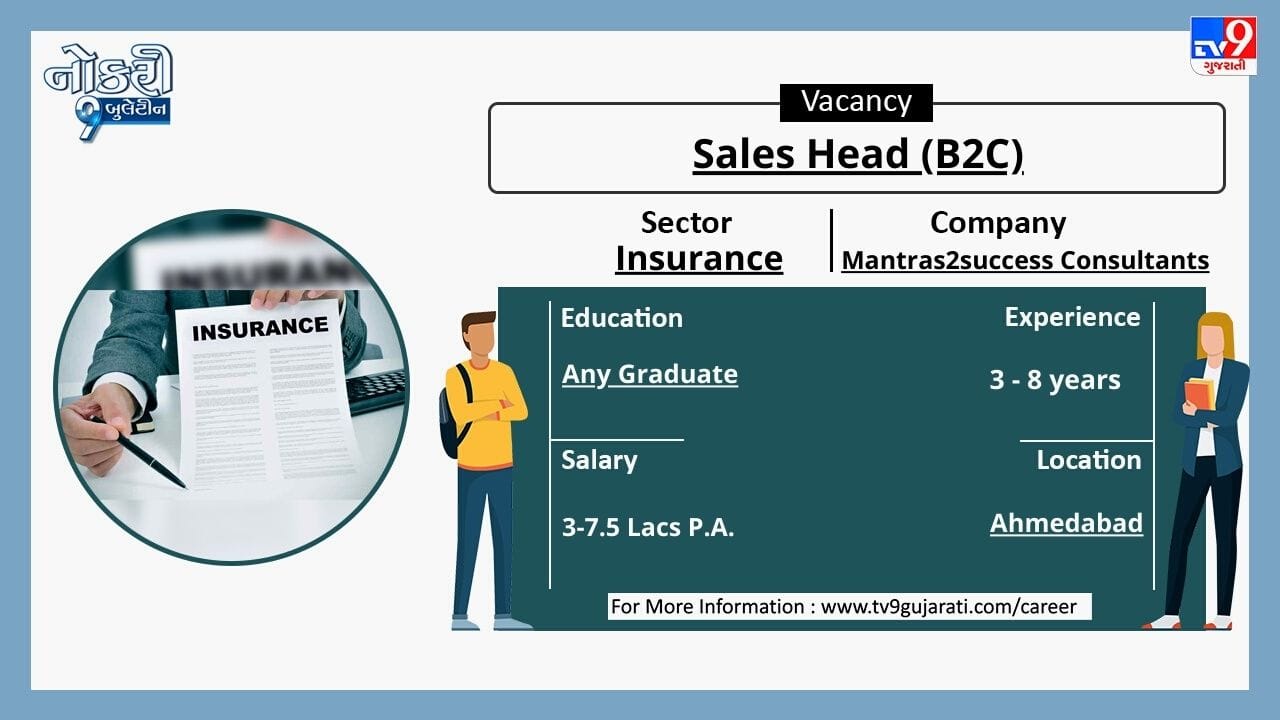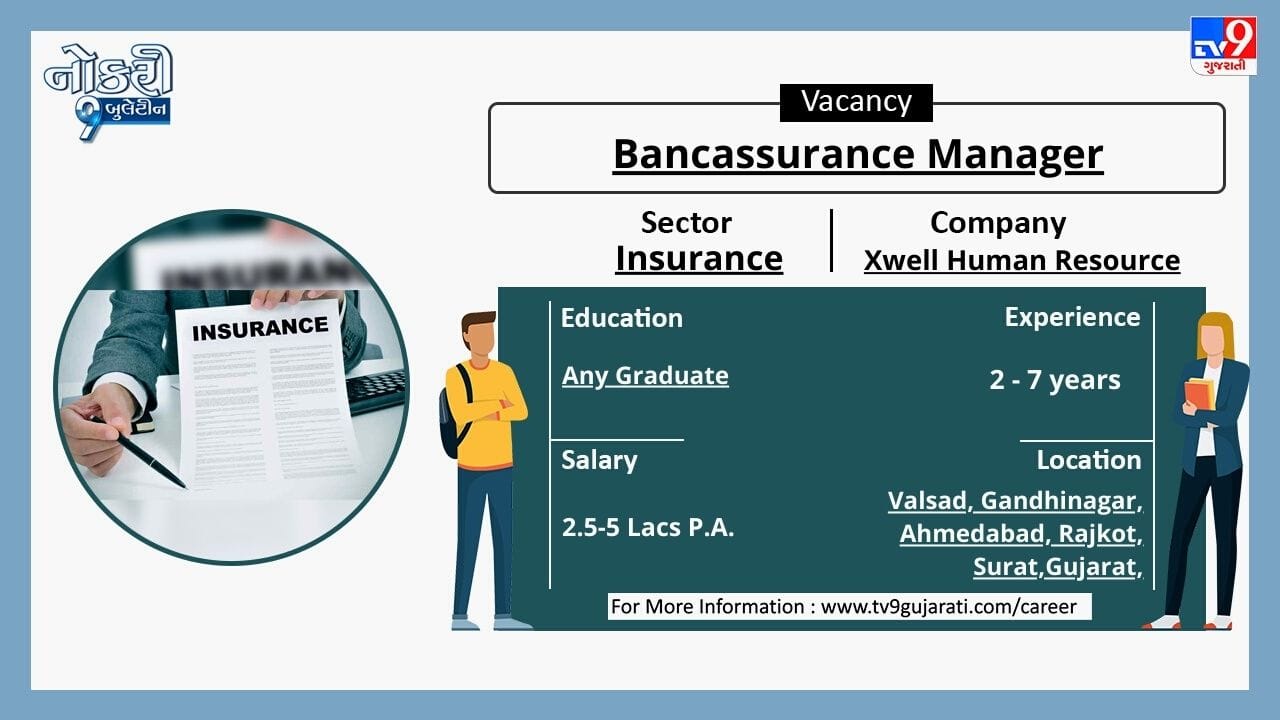 Ahmedabad: તમે નોકરીની શોધમાં છો અને તમને નોકરી શોધવામાં મુશ્કેલી પડી રહી છે, તો તમે આ આર્ટિકલમા આપેલી ડિટેલ્સ વાંચીને જોબ માટે એપ્લાય કરી શકો છો. તમે ધોરણ 10 કે 12 પાસ છો કે સ્નાતક છો, તો અમે તમારા માટે અનેક ક્ષેત્રોમાં નોકરીની નવી તકો લઈને આવ્યા છીએ. ધોરણ 10 કે 12 પાસ કે સ્નાતક થયેલા લોકો માટે નવી તકો (Job Vacancy) સર્જાઈ છે, ઈન્સ્યોરન્સ ક્ષેત્રે નોકરી શોધી રહેલા ઉમેદવારો આ લીંક પર ક્લિક કરો. સ્નાતકોને મહિને 60,000થી વધુ પગાર મળશે.