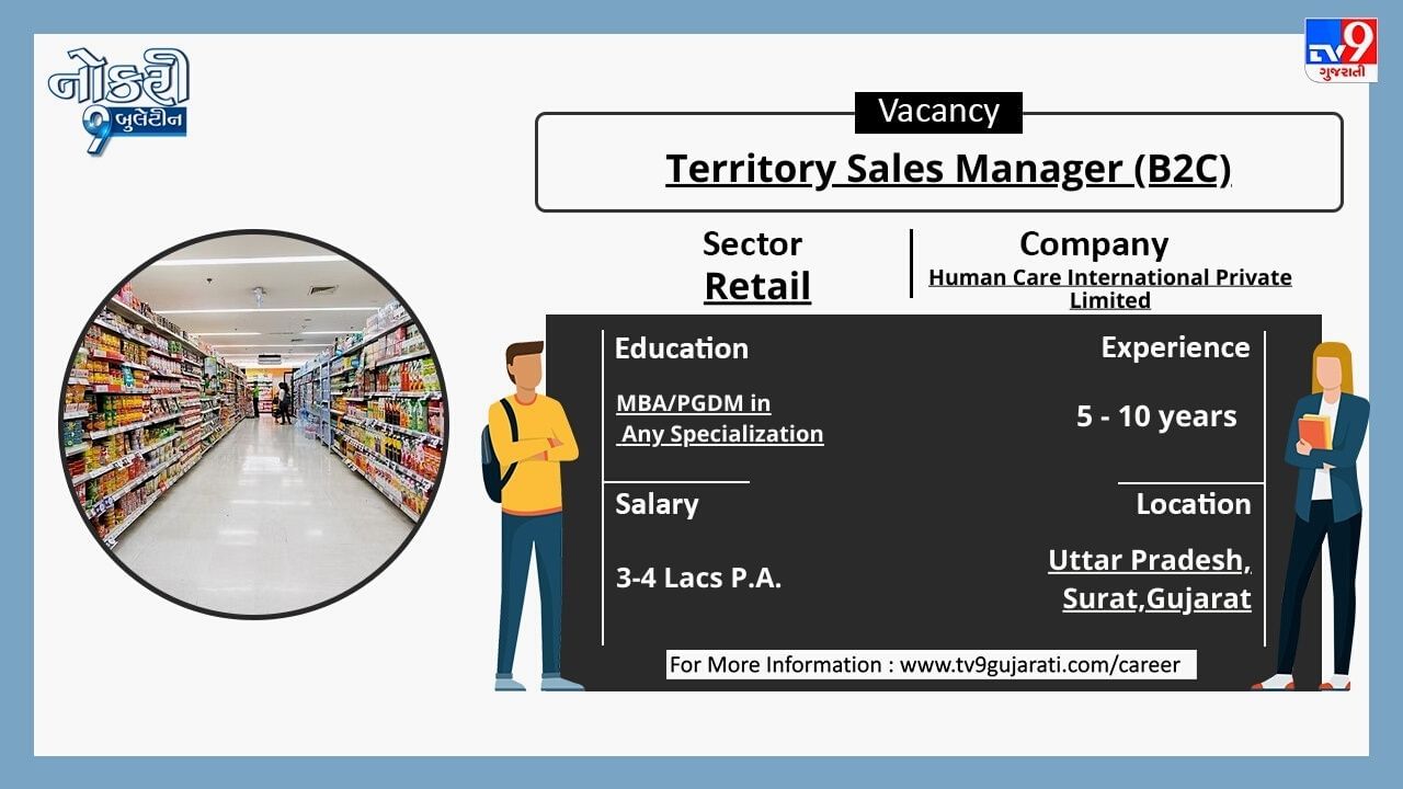 Ahmedabad: તમે નોકરીની શોધમાં છો અને તમને નોકરી શોધવામાં મુશ્કેલી પડી રહી છે, તો તમે આ આર્ટિકલમા આપેલી ડિટેલ્સ વાંચીને જોબ માટે એપ્લાય કરી શકો છો. તમે ધોરણ 10 કે 12 પાસ છો કે સ્નાતક છો, તો અમે તમારા માટે અનેક ક્ષેત્રોમાં નોકરીની નવી તકો લઈને આવ્યા છીએ. ધોરણ 10 કે 12 પાસ કે સ્નાતક થયેલા લોકો માટે નોકરીની નવી તકો (Job Vacancy) સર્જાઈ છે, રીટેલ ક્ષેત્રે નોકરી શોધી રહેલા ઉમેદવારો આ લીંક પર ક્લિક કરો. સ્નાતકોને મહિને 45,000થી વધુ પગાર મળશે.