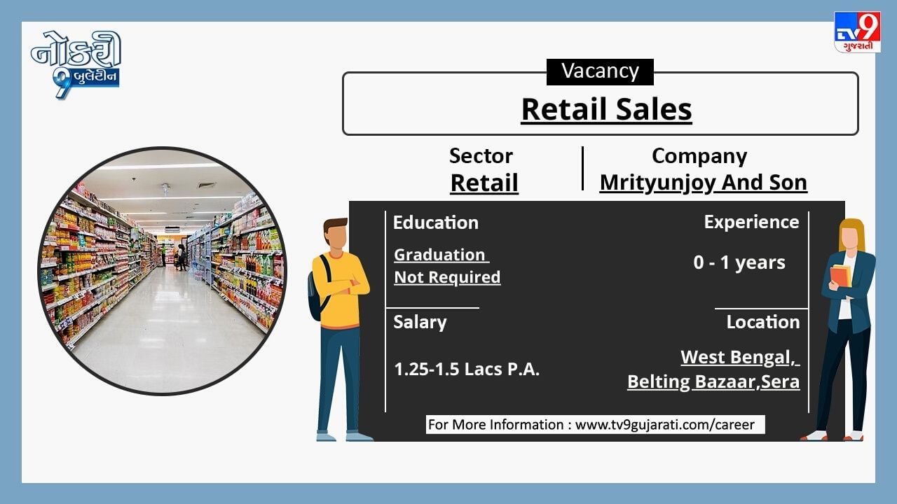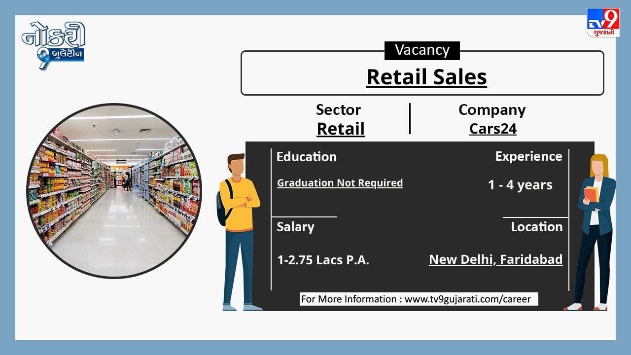 Naukri9 Video: સ્નાતકો માટે રીટેલ ક્ષેત્રમાં નોકરીની ઉત્તમ તક, મળશે મહિને 45,000થી વધુ પગાર