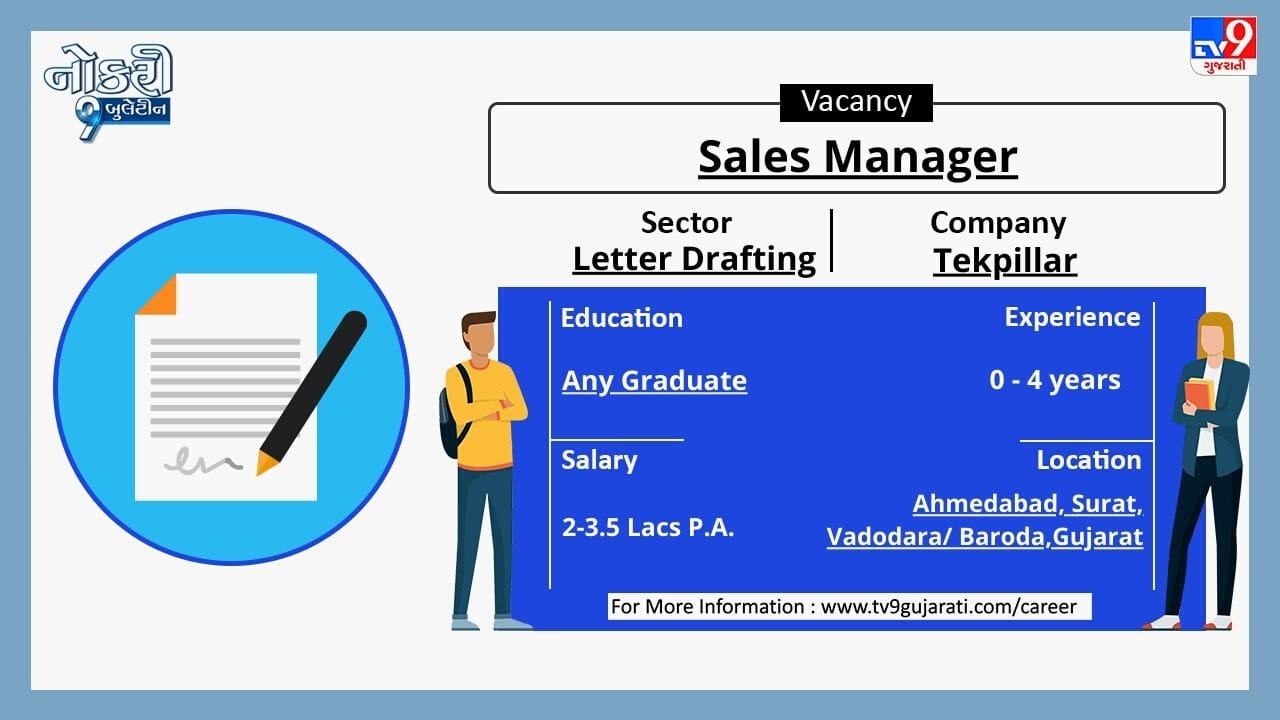 Ahmedabad: તમે નોકરીની શોધમાં છો અને તમને નોકરી શોધવામાં મુશ્કેલી પડી રહી છે, તો તમે આ આર્ટિકલમા આપેલી ડિટેલ્સ વાંચીને જોબ માટે એપ્લાય કરી શકો છો. તમે ધોરણ 10 કે 12 પાસ છો કે સ્નાતક છો, તો અમે તમારા માટે અનેક ક્ષેત્રોમાં નોકરીની નવી તકો લઈને આવ્યા છીએ. ધોરણ 10 કે 12 કે સ્નાતક થયેલા લોકો માટે નોકરીની ઉતમ તકો (Job Vacancy) સર્જાઈ છે, લેટર ડ્રાફટિંગમાં નોકરી શોધી રહેલા ઉમેદવારો આ લીંક પર ક્લિક કરો. સ્નાતકોને મહિને 45,000થી વધુ પગાર મળશે.