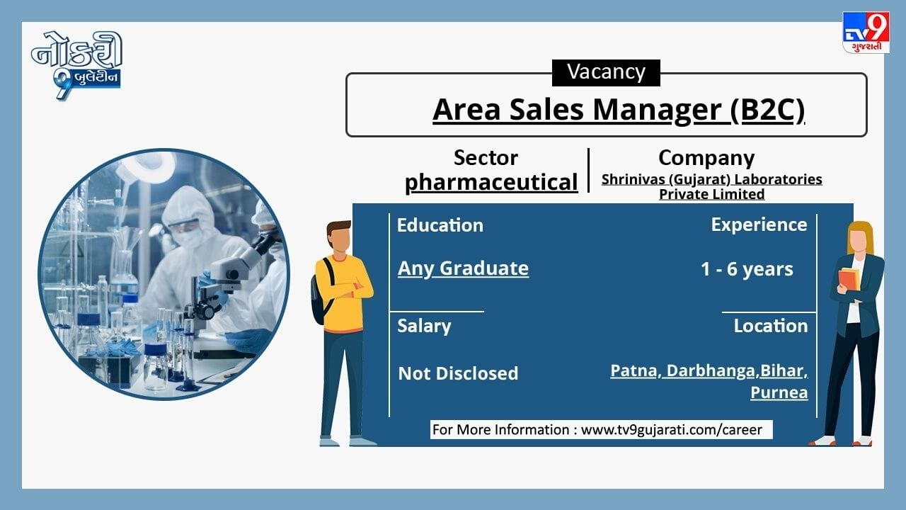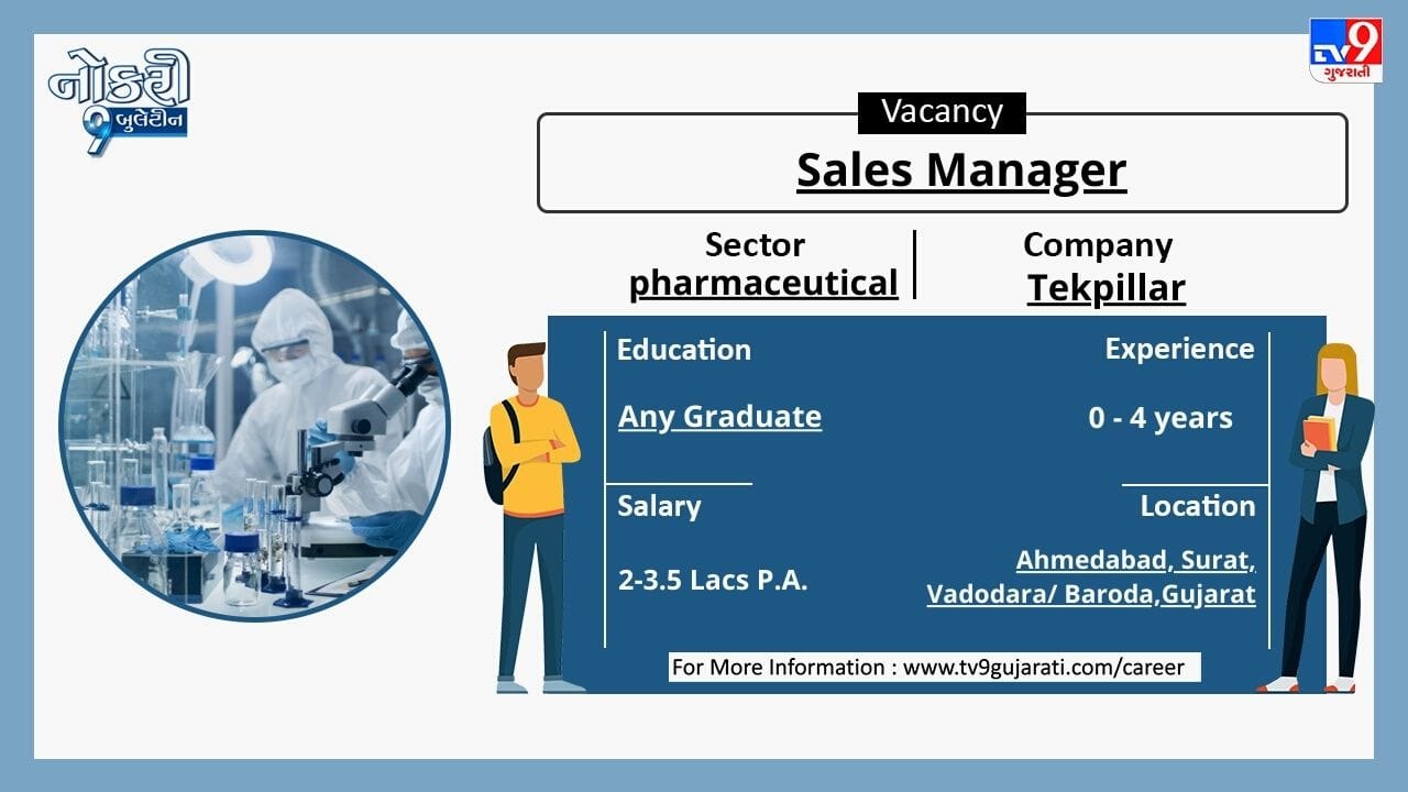 Ahmedabad: તમે નોકરીની શોધમાં છો અને તમને નોકરી શોધવામાં મુશ્કેલી પડી રહી છે, તો તમે આ આર્ટિકલમા આપેલી ડિટેલ્સ વાંચીને જોબ માટે એપ્લાય કરી શકો છો. તમે ધોરણ 10 કે 12 પાસ છો કે સ્નાતક છો, તો અમે તમારા માટે અનેક ક્ષેત્રોમાં નોકરીની નવી તકો લઈને આવ્યા છીએ. ધોરણ 10 કે 12 પાસ કે સ્નાતક થયેલા લોકો માટે નોકરીની ઉતમ તકો (Job Vacancy) સર્જાઈ છે, ફાર્માસ્યુટિકલ ક્ષેત્રે નોકરી શોધી રહેલા ઉમેદવારો આ લીંક પર ક્લિક કરો. સ્નાતકોને મહિને 33,000થી વધુ પગાર મળશે.