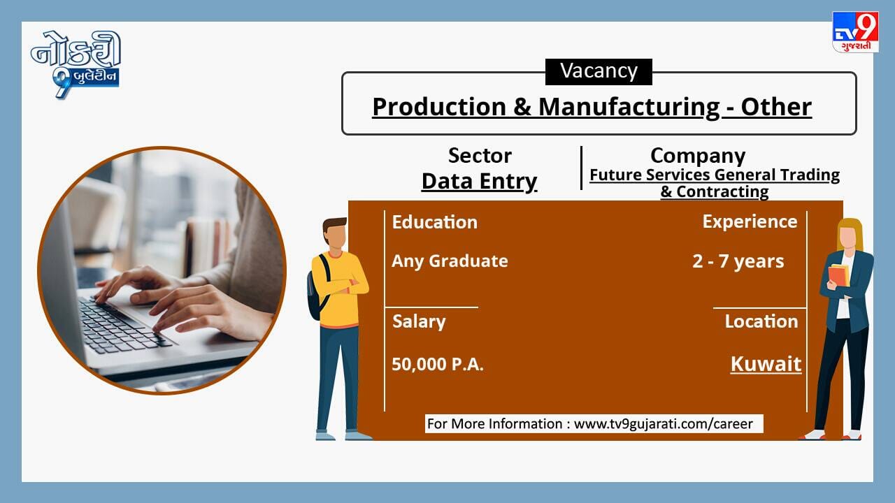 ધોરણ 10 કે 12 પાસ કે સ્નાતક થયેલા લોકો માટે નોકરીની ઉતમ તકો (Job Vacancy) સર્જાઈ છે, એન્જિનિયરિંગ ક્ષેત્રે નોકરી શોધી રહેલા ઉમેદવારો આ લીંક પર ક્લિક કરો. સ્નાતકોને મહિને 1,00,000થી વધુ પગાર મળશે.
